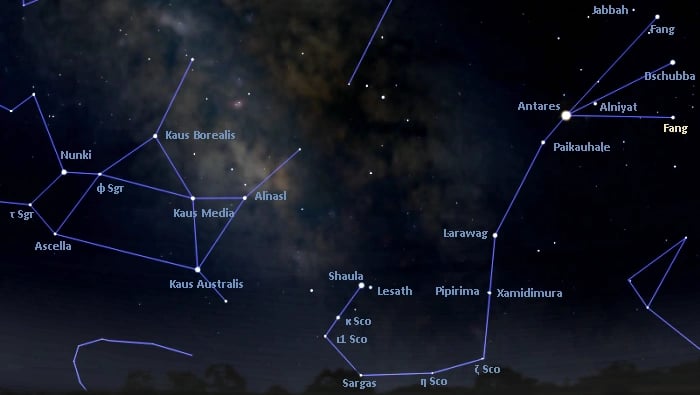 The STARMAP shows the position of the latest colonial landing on Planet Gorodin in the star system known as "Fang" a little east of the supergiant Antares. Following the spine of the scorpion south from Antares, you will see the location of Xamidimura Outpost, now occupied by Arras and his Saurians.